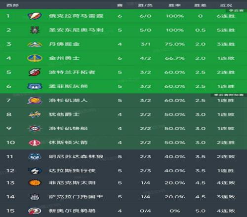 NBA西部最新积分榜:雷霆6连胜排第1,马刺5连胜第2,勇士下滑第4