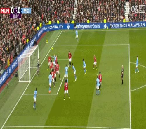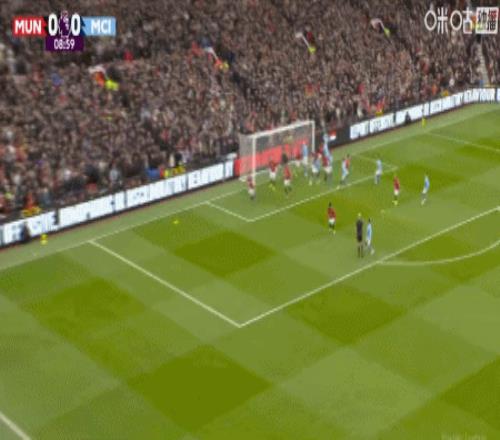 第15分钟,曼城右路斜传禁区,B席头球攻门顶高