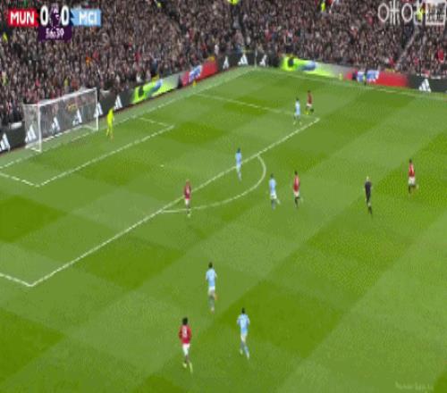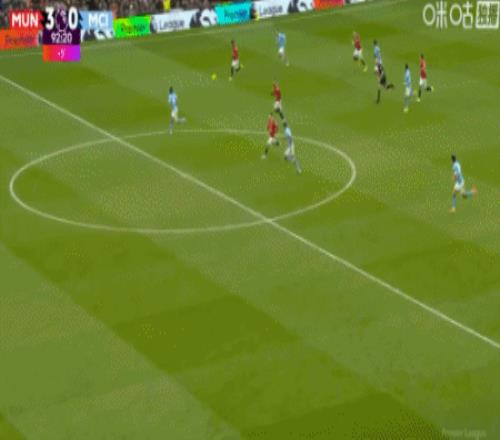 第65分钟,B费直塞助攻,姆伯莫打远角得手,曼联1-0领先曼城!