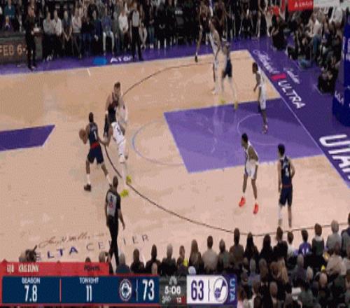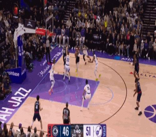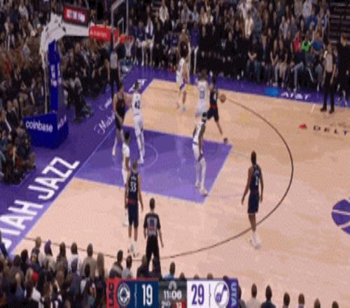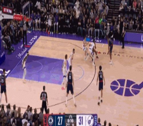 他在防守端也超级积极,不断压迫对手